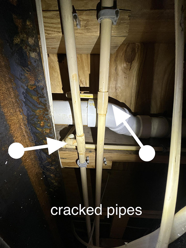 Hidden plumbing leaks can cause serious damage before they become visible, especially when pipes run through ceilings or wall cavities. In this case, a cracked pipe allowed water to spread through the basement ceiling and flooring, affecting multiple materials within the space.